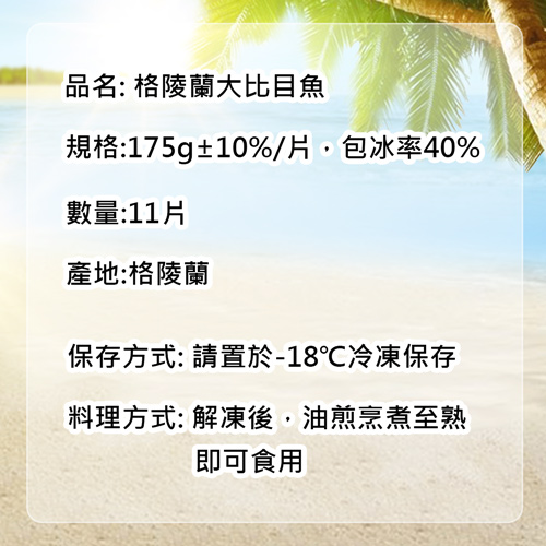 .商品名稱:格陵蘭|大比目魚175g|11片