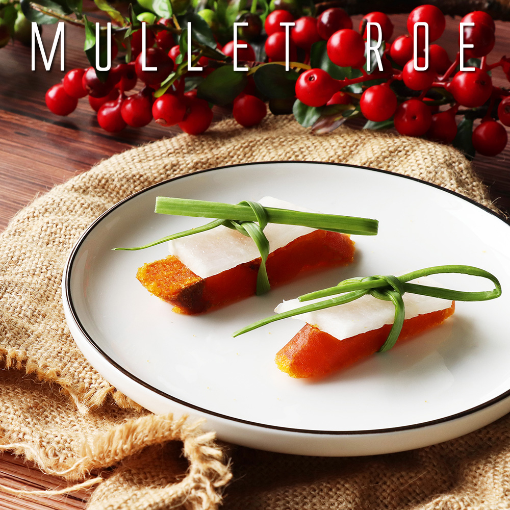 嚴選野生特大烏魚子,採用傳統日曬法製作低鹽、天然日曬