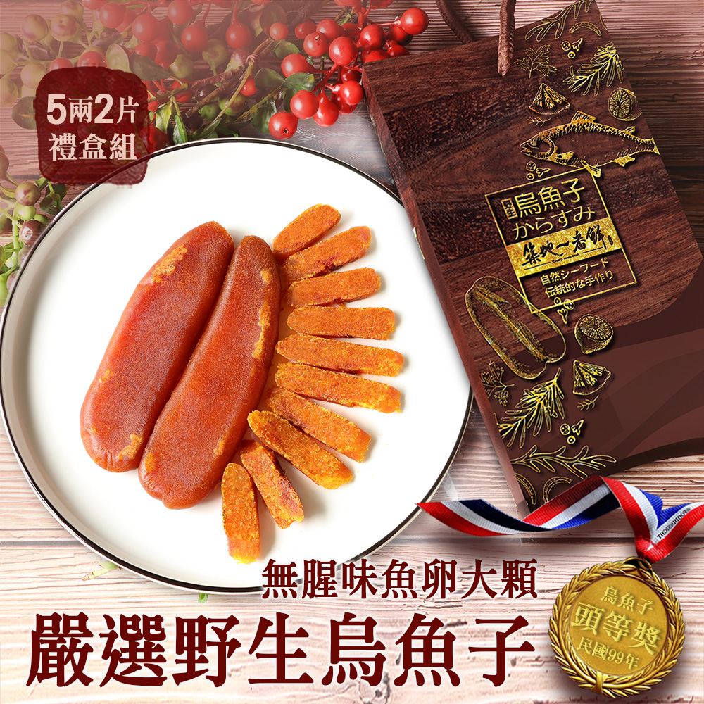 .商品名稱:嚴選口湖頭等獎野生烏魚子5兩X2片禮盒組(187g/片)