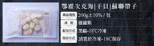 ‧商品名稱:野生|蘇聯帶子干貝200g|任選