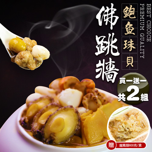 ●商品名稱:買一送一|鮑魚珠貝佛跳牆2.4kg|2盒|加贈龍鳳翅1盒