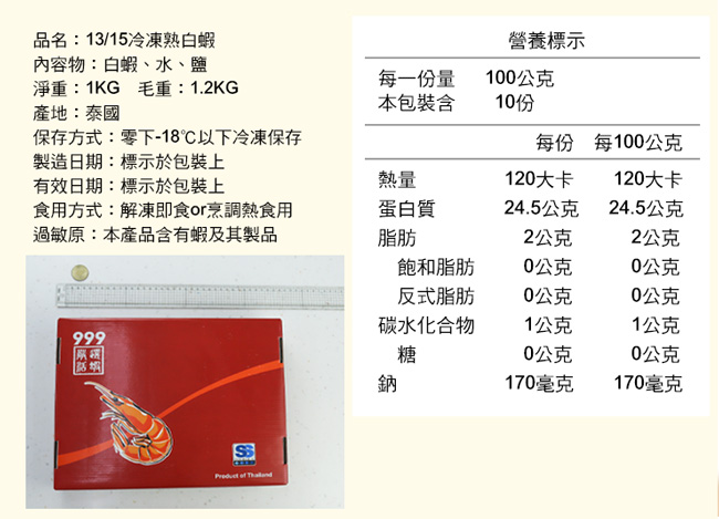 ●內容物名稱:生白蝦