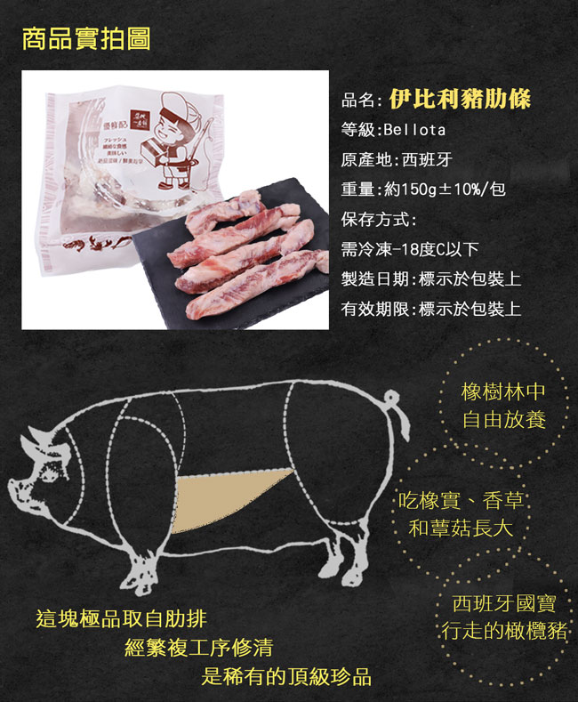 .商品名稱:橡實果Bellota伊比利豬肋條1包(150g/包)-任選