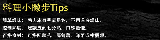 這類高級豬肉不像一般白豬需要全熟才能安全食用,因為伊比利豬飼養環境嚴格(自由放養、以橡實為主食),加上肉質油花特性,可採「粉嫩熟」(medium) 的熟度