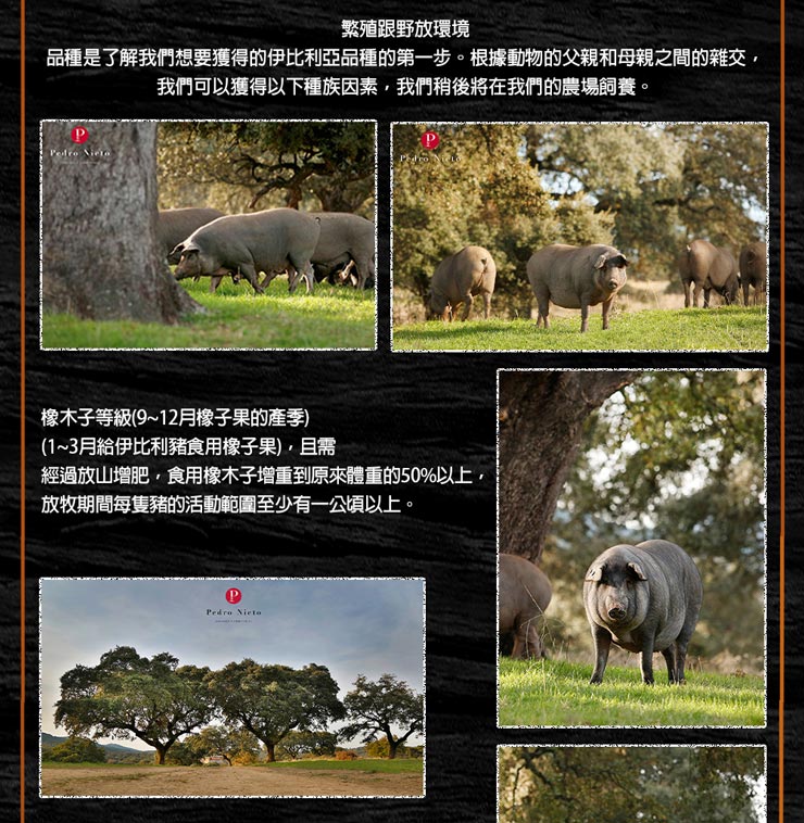 Bellota 豬放養於橡樹林地主食為橡果實,肉質帶有堅果香氣與草本清香