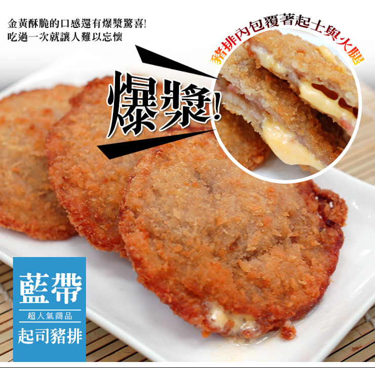 .商品名稱:爆漿藍帶起司豬排40片(85g/片)免運