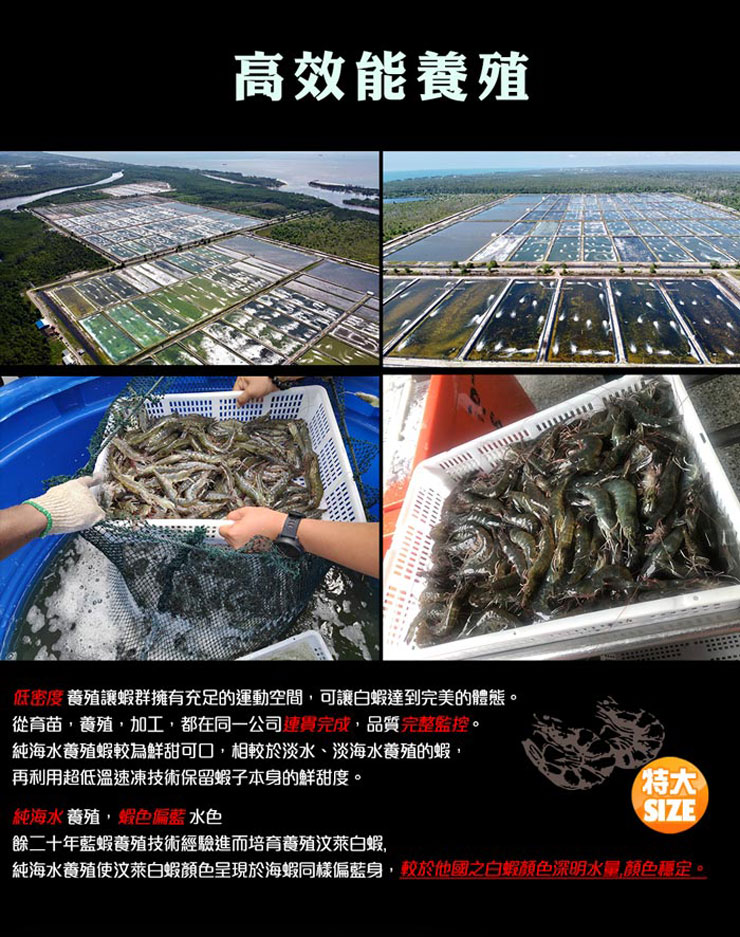 低密度養殖:讓蝦在充足的空間成長,並食用天然藻類蝦肉扎實Q彈。