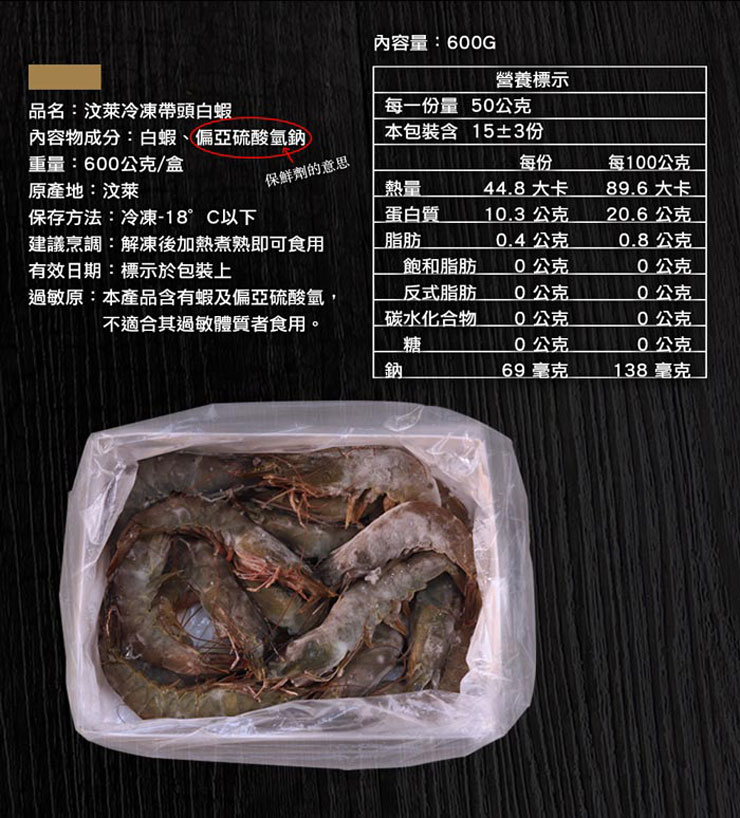 .規格數量: 600g±10%/每盒約15±3尾,共收到3盒