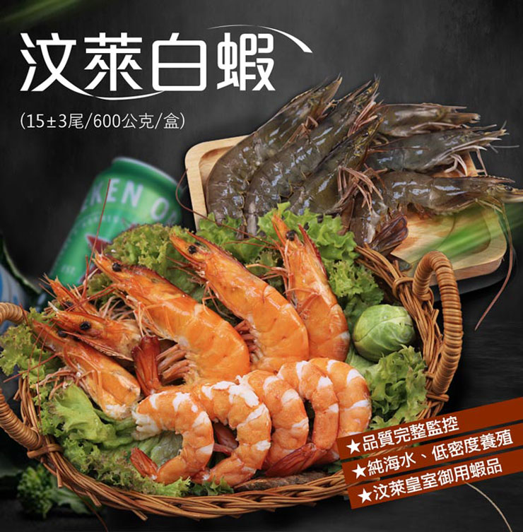 .商品名稱:【築地一番鮮】嚴選海水養殖汶萊白蝦3盒(600g/盒15±3尾)免運