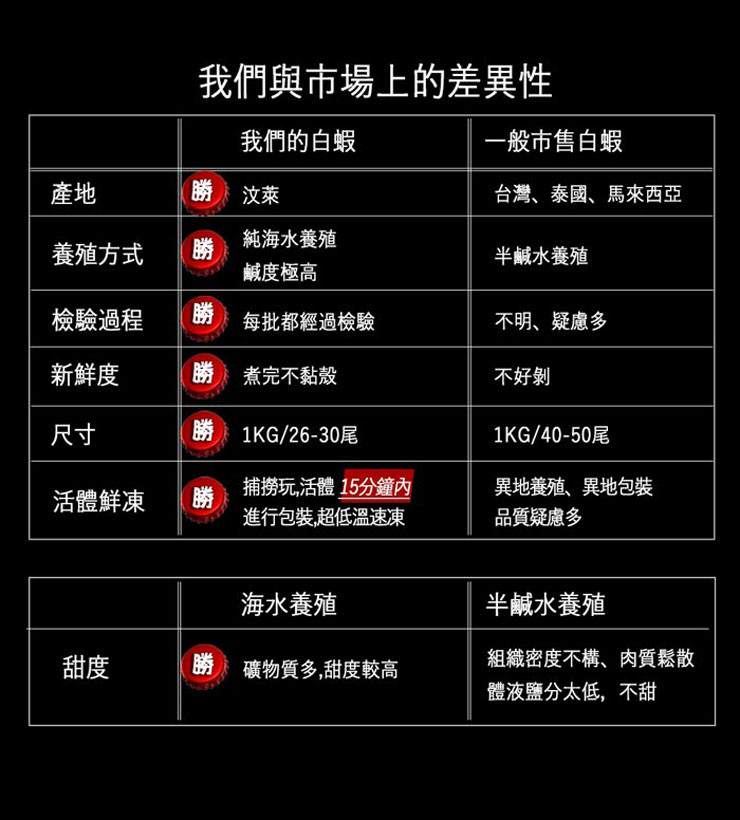 ★純海水、低密度養殖,甜度高、肉質Q彈