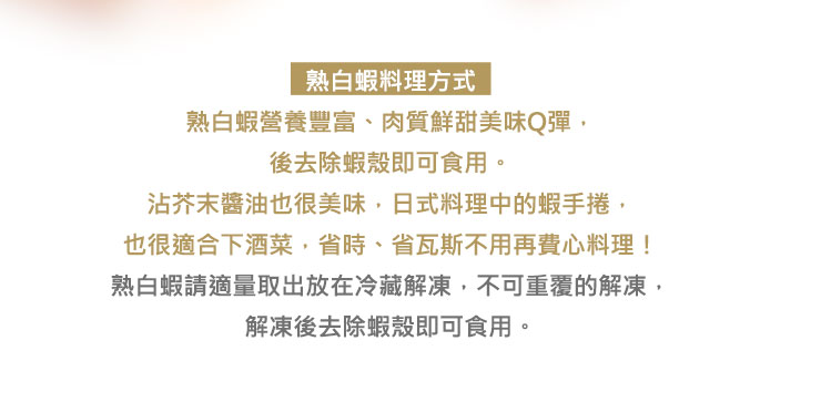 .食用方式:解凍即食、退冰烹煮至熟食用