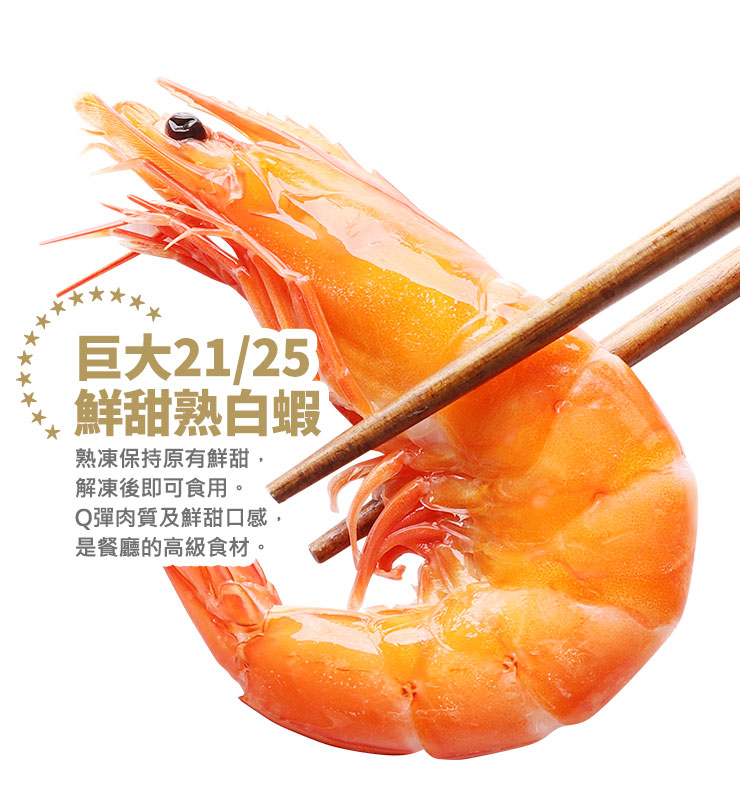 .商品名稱:【築地一番鮮】巨大21/25鮮甜熟白蝦1盒(1.1kg/盒/約25尾)免運