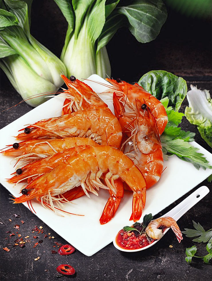 冰鎮收縮-煮熟後立刻放入冰水中冰鎮,蝦肉收縮,殼更容易脫落。