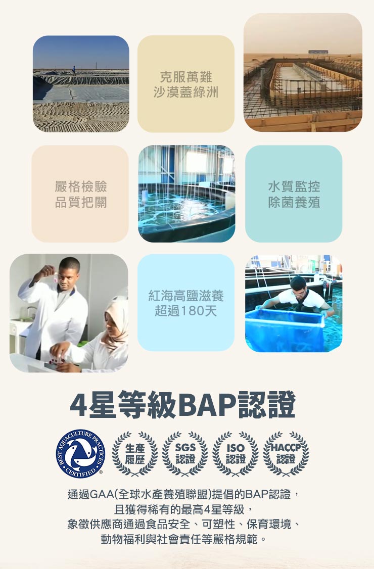 養殖於全世界鹽度最高的紅海,造就其肉質Q彈、鮮甜