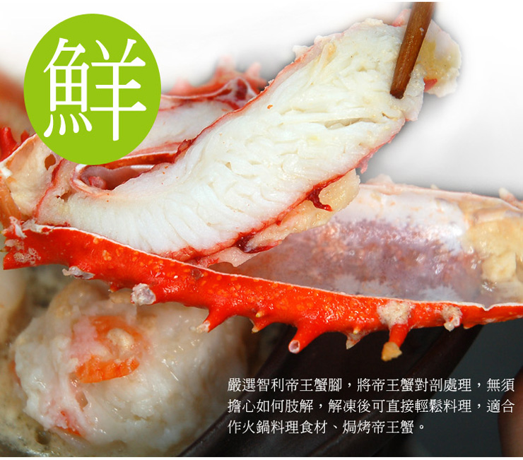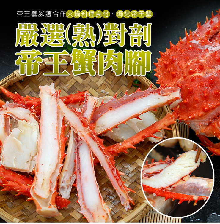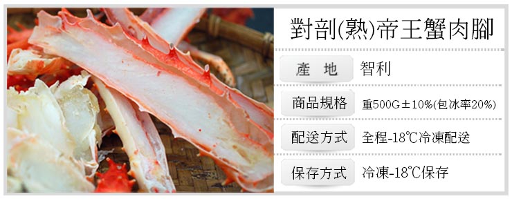 .商品名稱:【築地一番鮮】嚴選智利(熟)對剖帝王蟹肉腳2盒(500g/盒)免運