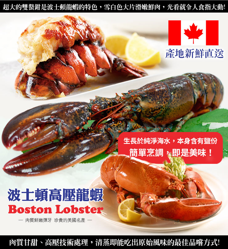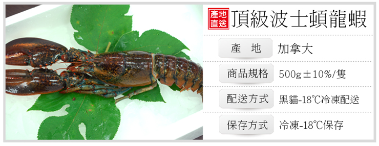 .商品名稱:加拿大直送-頂級波士頓高壓龍蝦2隻(約500g/隻)免運