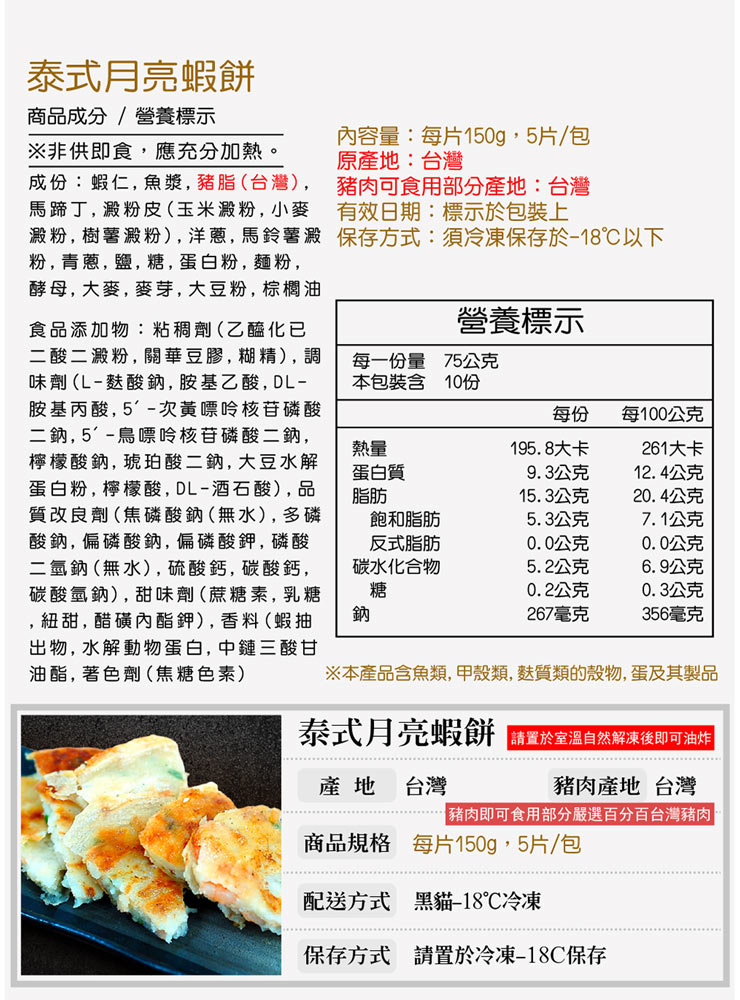 .商品名稱:【築地一番鮮】料超多月亮蝦餅10片(150G/片)免運
