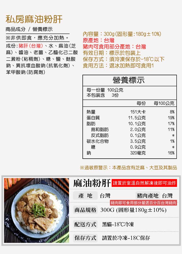 .商品名稱:買1送1【築地一番鮮】鮮嫩私房麻油粉肝5包(300g/包 共10包)免運