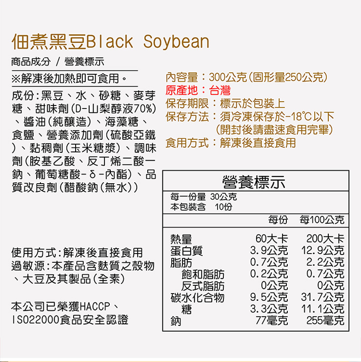 ‧●內容物名稱:黑豆