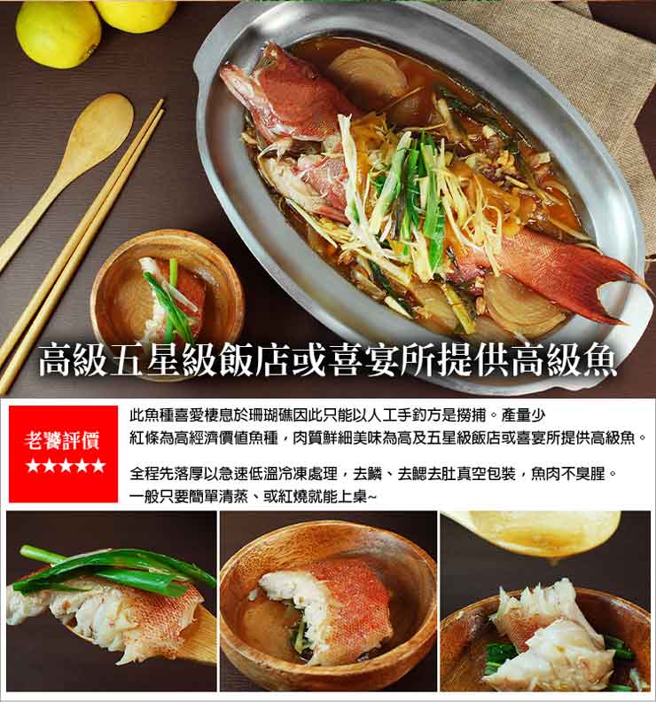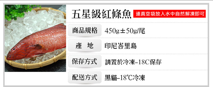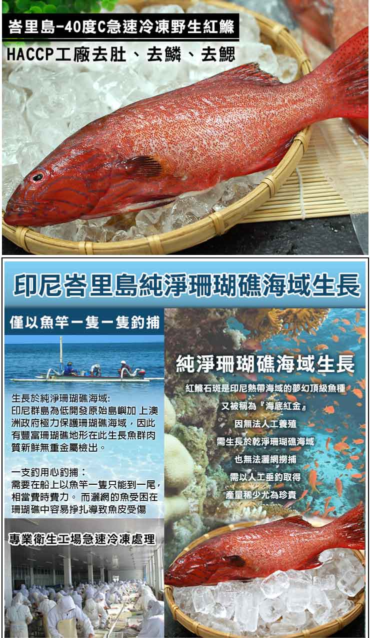 ‧●商品名稱:【築地一番鮮】海底紅金-峇里島-野生紅鰷石斑魚4條(450g/條)免運