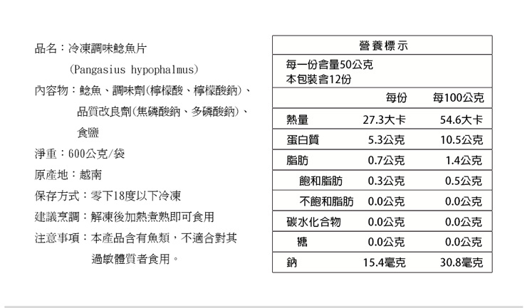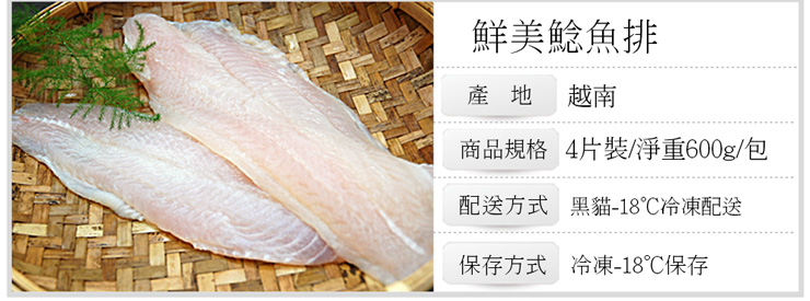 .商品名稱:買1送1【築地一番鮮】鮮美鯰魚排4片(淨重600g/包/4片裝)-任選