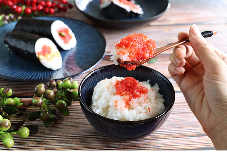 1.明太子拌飯 : 直接將明太子放入白飯搭配海苔食用。