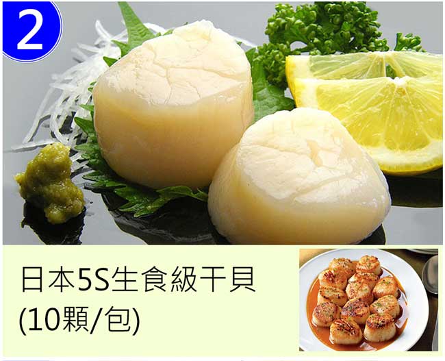 2. 日本生食級5S干貝(10顆/包,160g±10%/包/16g±10%/顆)