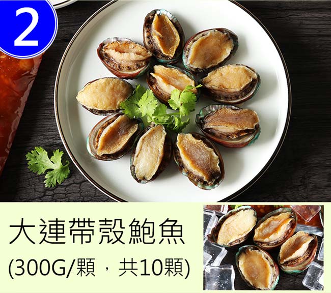 2. 大連鮑魚10顆(300g/包/包冰率45%)