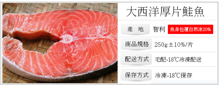 .商品名稱:智利中段輪切鮭魚 9片(250g/片)