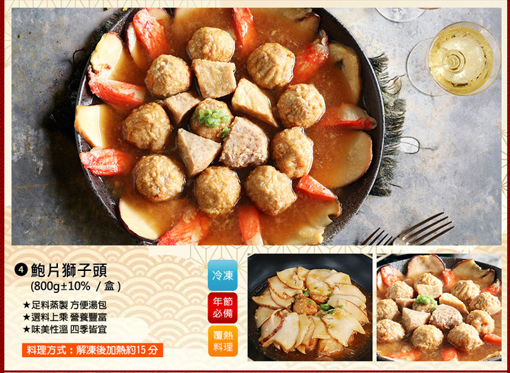 4.鮑片獅子頭:如圖所示(依商品包裝標示為準)