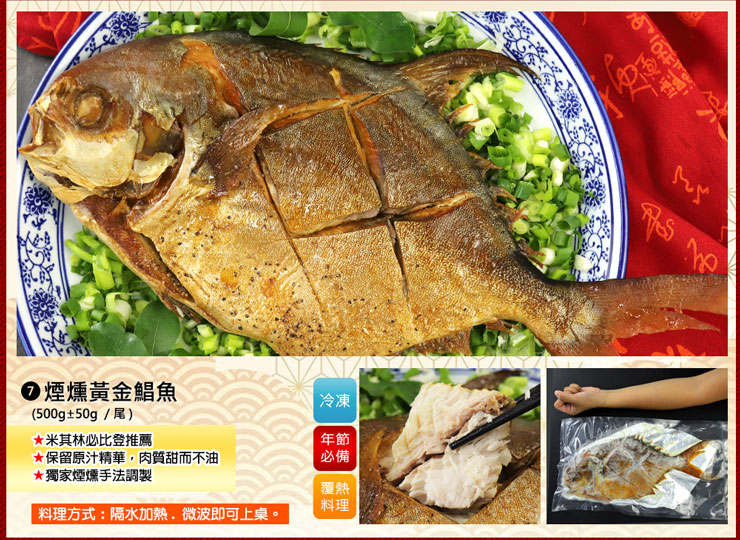 7.煙燻黃金鯧魚:如圖所示(依商品包裝標示為準)