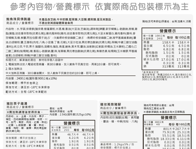 3. 鮑魚珠貝佛跳牆:如圖所示(依商品包裝標示為準)