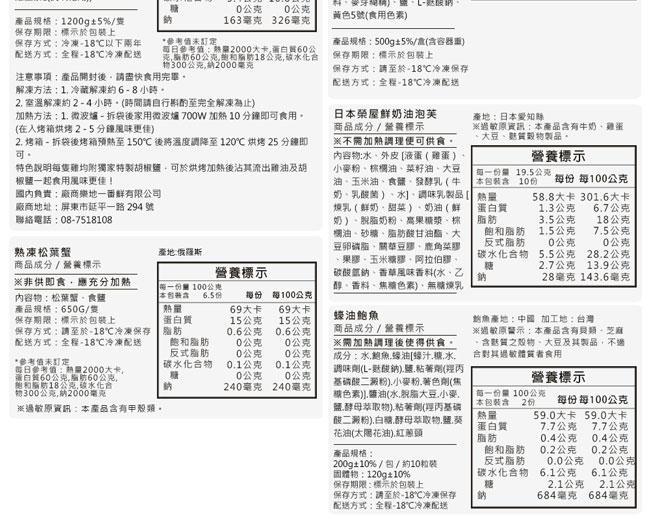 1. 熟凍松葉蟹:如圖所示(依商品包裝標示為準)
