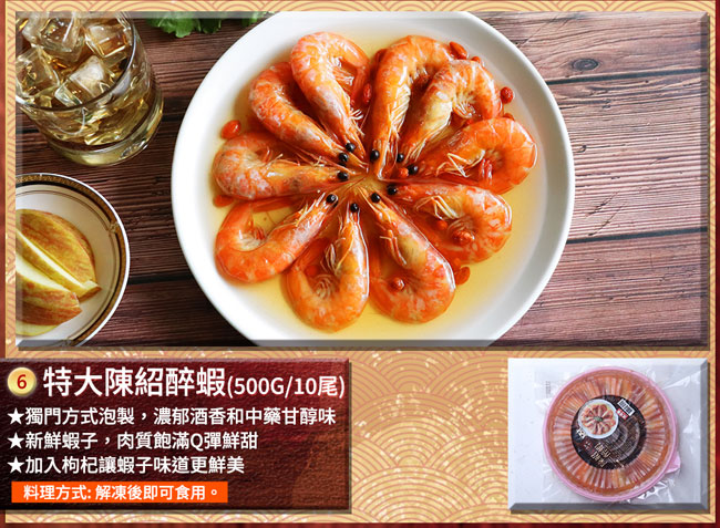 7. 特大陳紹醉蝦:如圖所示(依商品包裝標示為準)