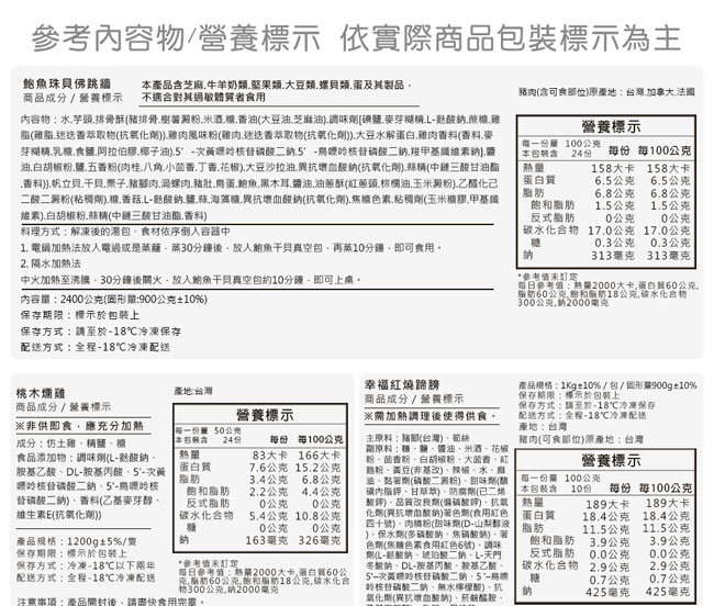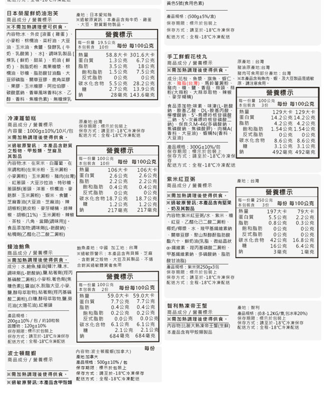 • 保存方式:請置於-18℃冷凍保存(一般家庭冰箱,冷凍僅約-18°C,建議購買後盡早食用。有別於業務型-24°C冷凍設備條件,將無法長期儲存。)