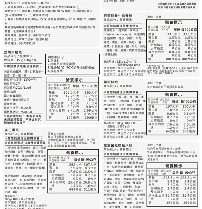 • 保存期限:180天以上(冷凍商品建議盡早食用完畢)