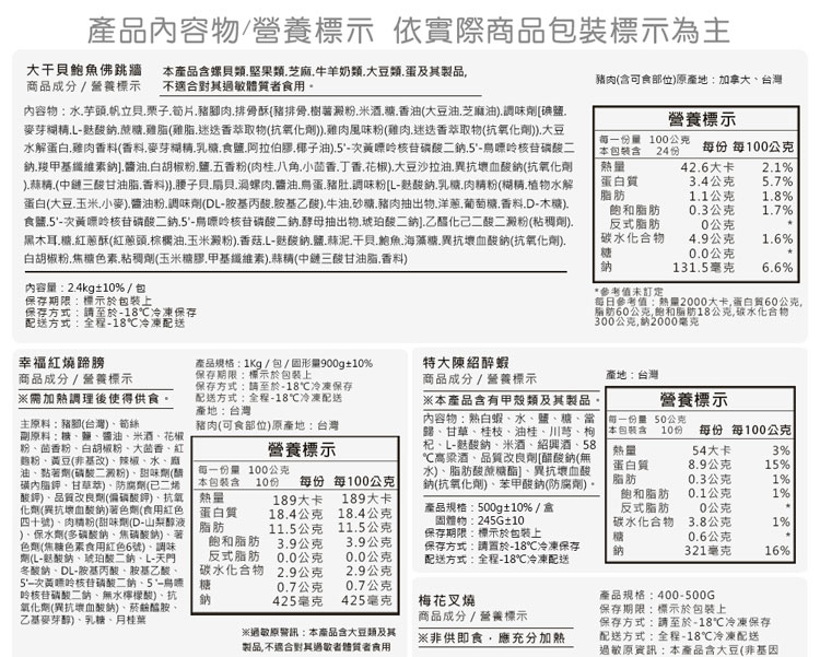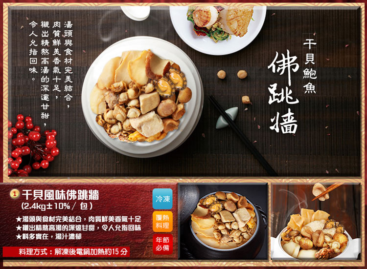 1.干貝風味佛跳牆:如圖所示(依商品包裝標示為準)