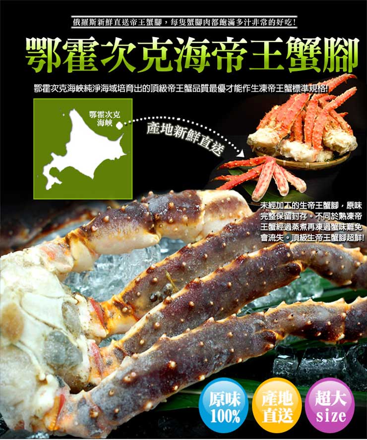 .商品名稱:頂級鄂霍次克海生凍鱈場蟹腳(800-900g/半對)免運