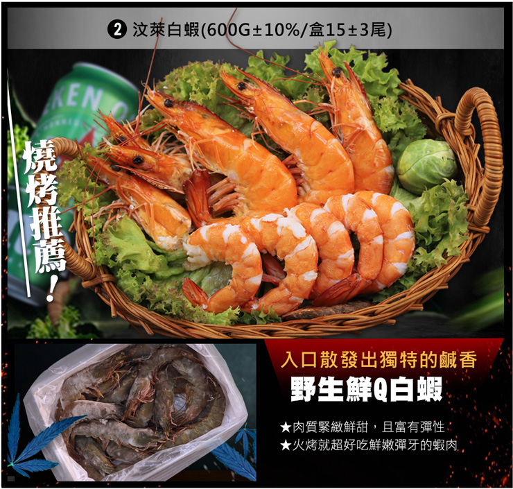 汶萊蝦(600g±10%/盒15±3尾/盒)