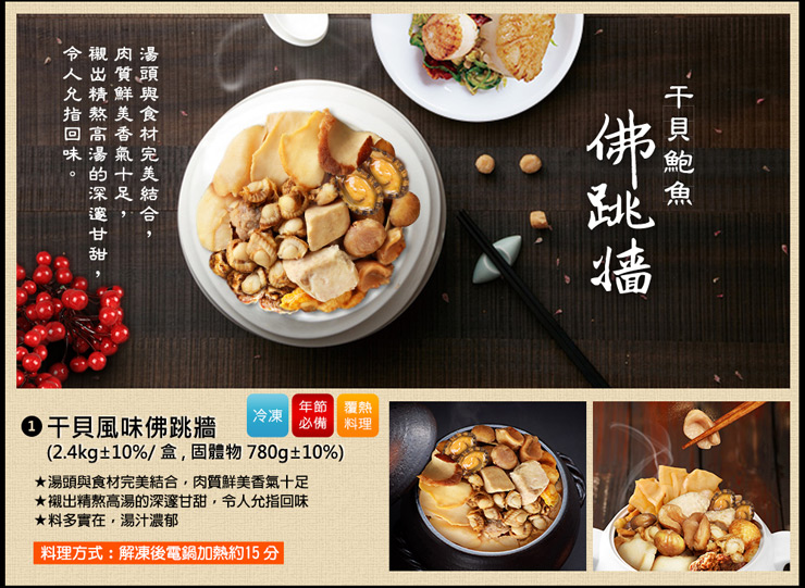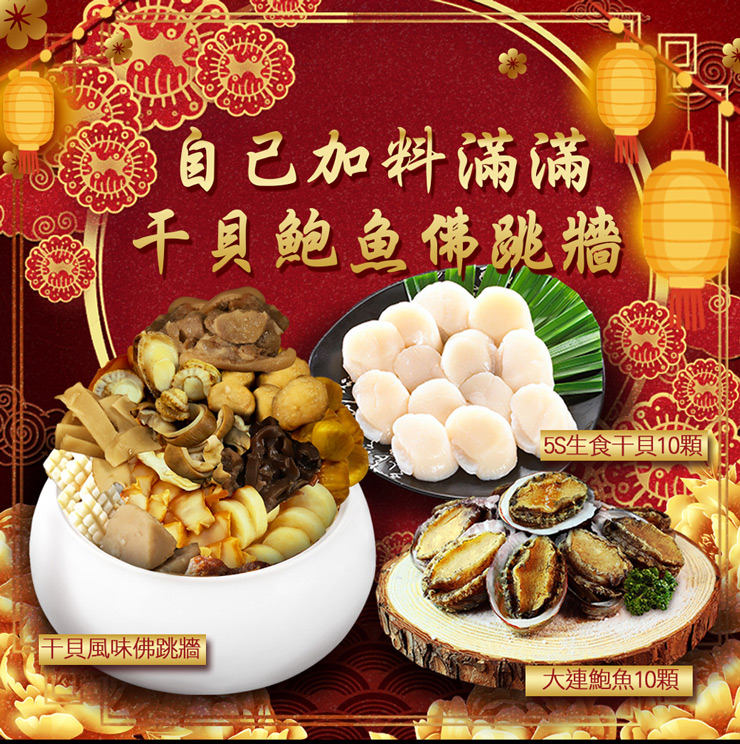 .商品名稱:自己加料滿滿干貝鮑魚佛跳牆(佛跳牆+生食干貝+鮑魚)