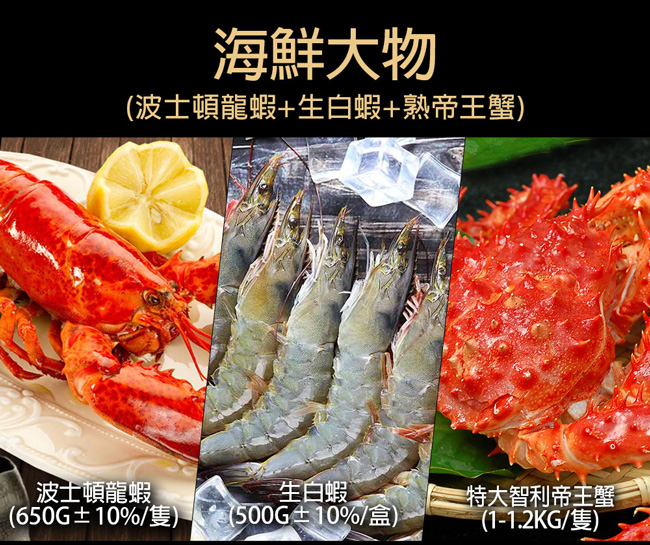 ●商品名稱:鮮大物|波士頓龍蝦+生白蝦+熟帝王蟹