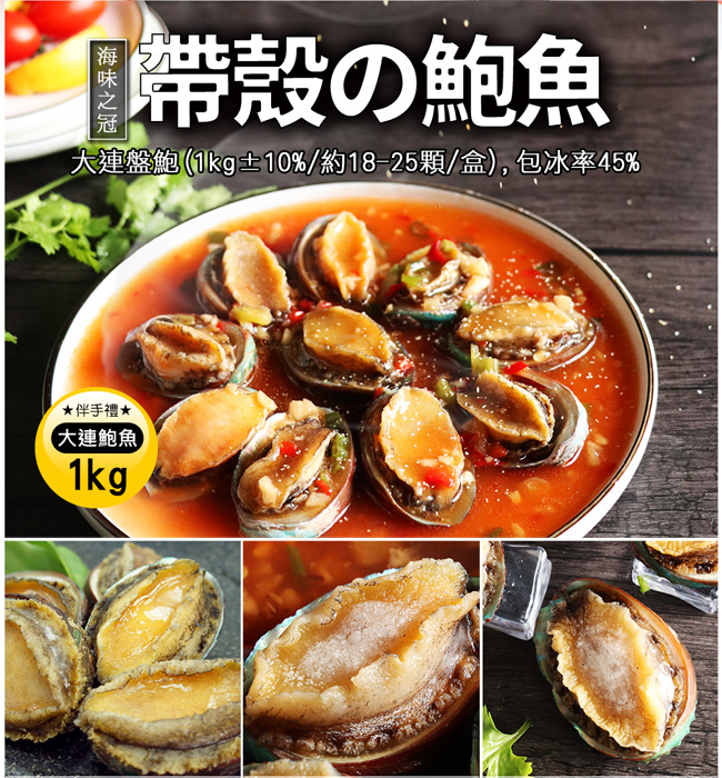 (2)大連鮑魚(1kg±10%/約18-25顆/盒,包冰率45%)