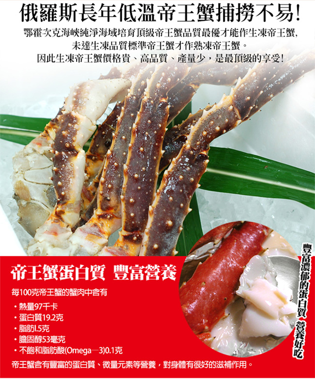 (1)鱈場蟹腳(1100-1200g/隻,包覆自然冰5%)