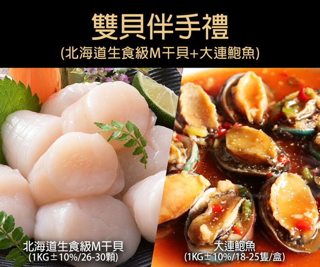 ●商品名稱:雙貝伴手禮|北海道生食M干貝+大連鮑魚
