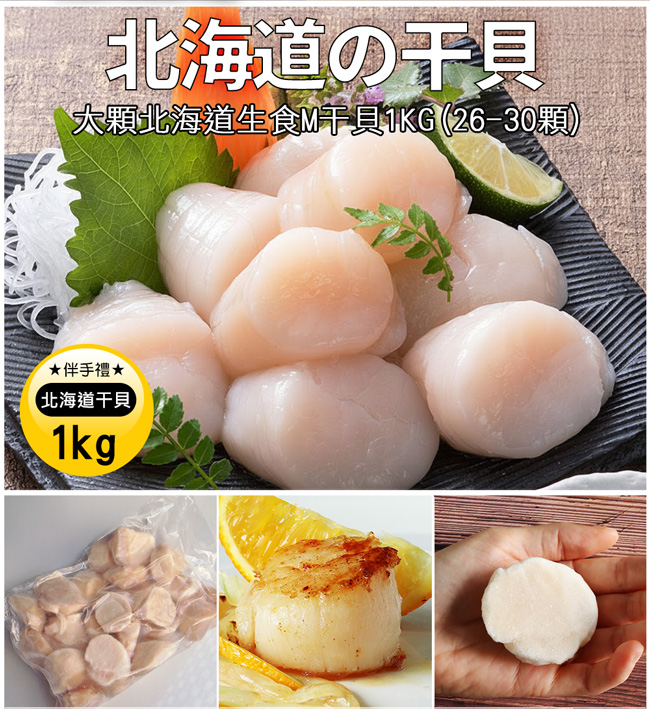 (1)北海道生食M干貝(1kg±10%/約26-30顆/盒)