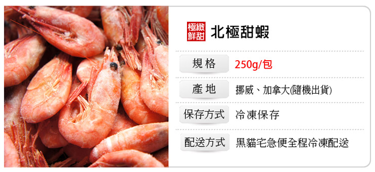 .商品名稱:★買1送1★頂級北極甜蝦1包(250g/包)-任選