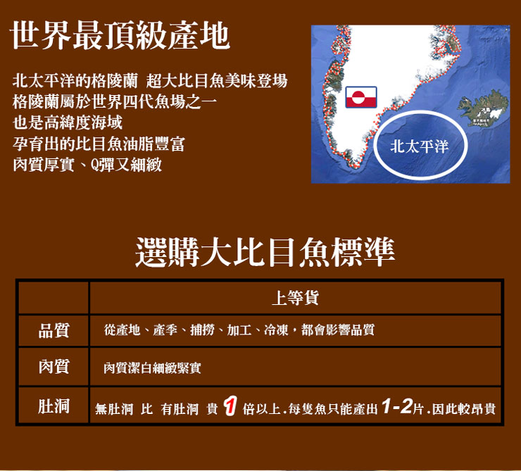 格陵蘭位於北極圈終年零度C下,比目魚生長緩慢