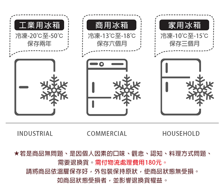★生鮮商品基於衛生考量不接受鑑賞物品後要求退貨。除非收到商品時有破損、解凍、腐敗等因素。若為上述原因請先立即將通知我們並將商品冷凍保存待宅配公司收取後,將立即幫你做退款或更換後續處理。