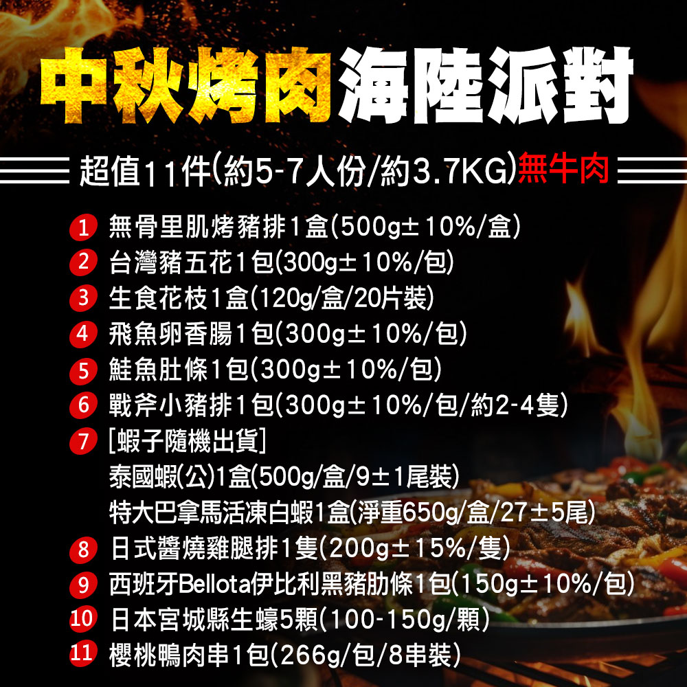 中秋烤肉海陸11件派對(約5-7人約3.6KG)-無牛肉