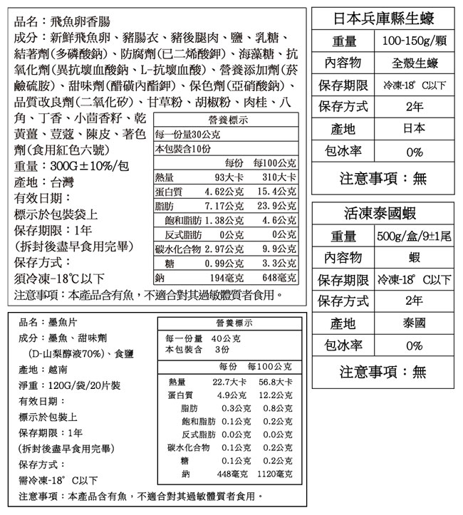 ※以上食材皆為生鮮食材,需烹煮至熟即可食用